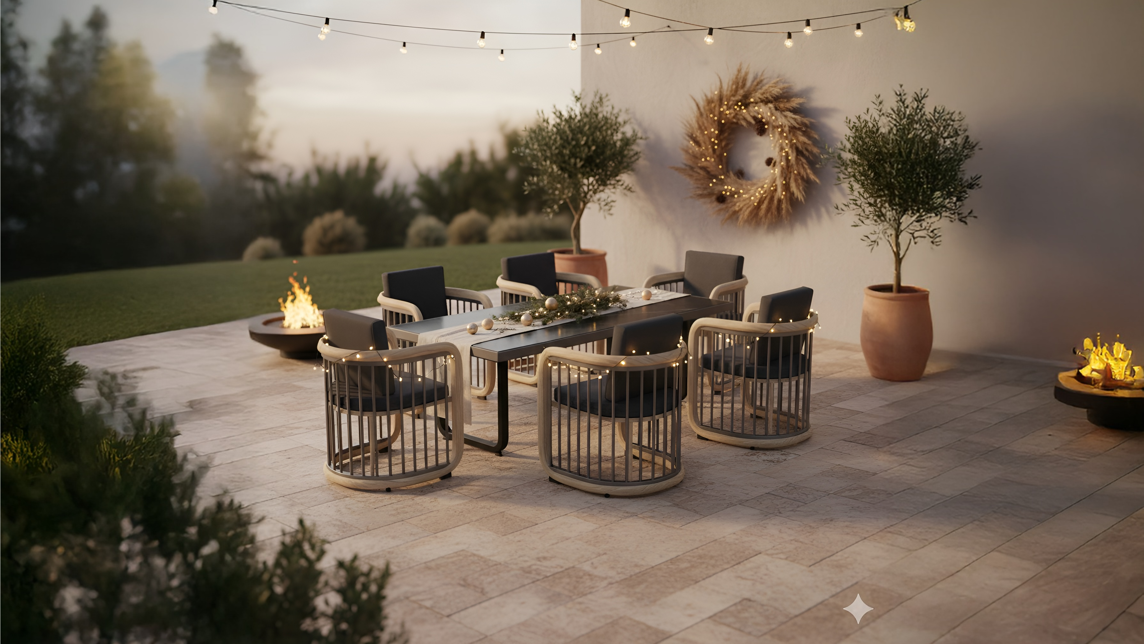 Host unforgettable holiday gatherings with thoughtfully crafted outdoor furniture — designed for warmth, comfort, and elegant moments under the winter sky.