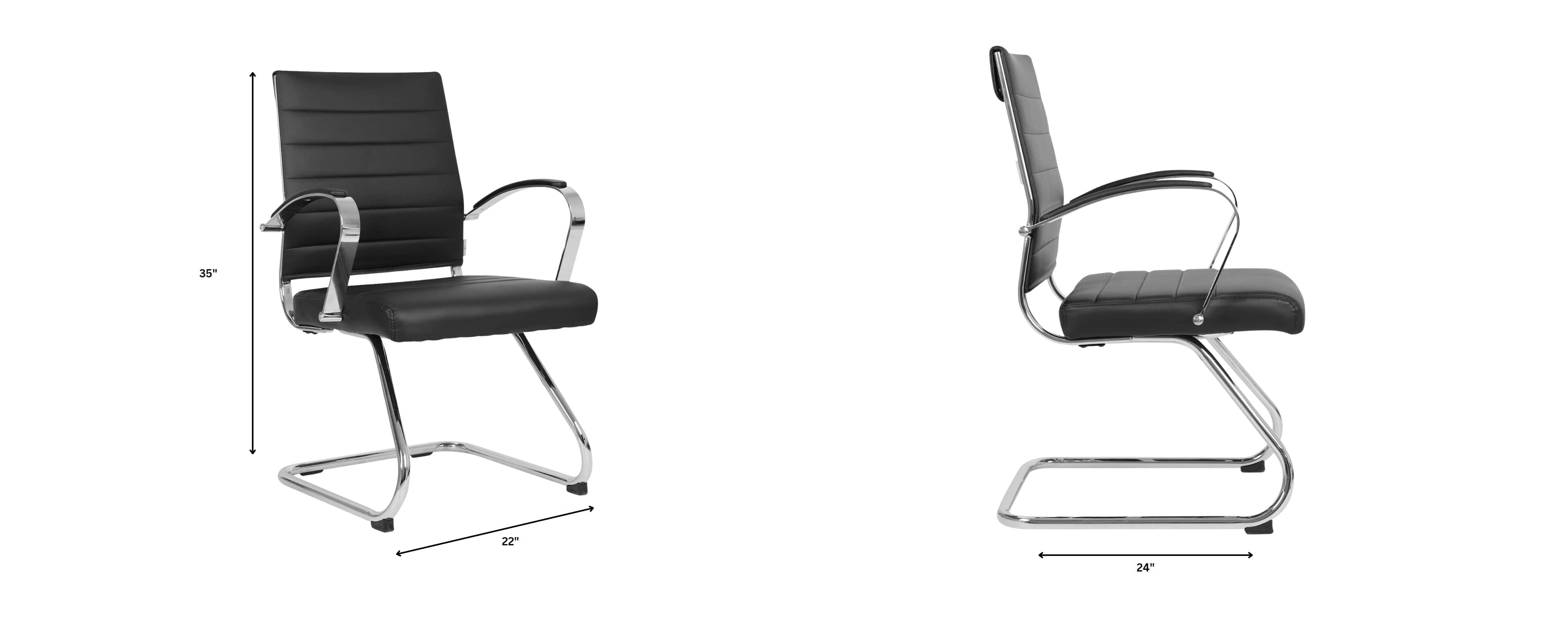 Benmar Mid-Back Office Conference Chair Upholstered in Leather with Stainless Steel Sled Base