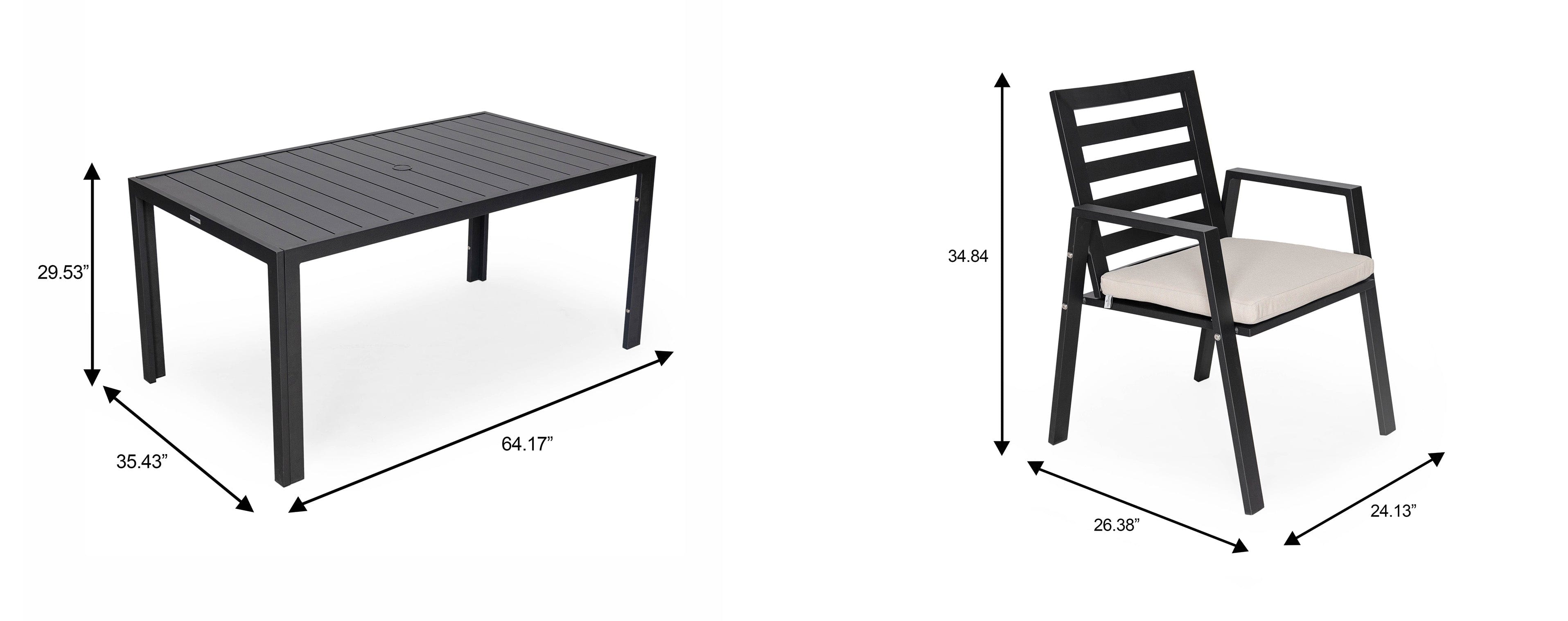Chelsea 7-Piece Modern Outdoor Dining Set in Black Aluminum with Removable Cushions