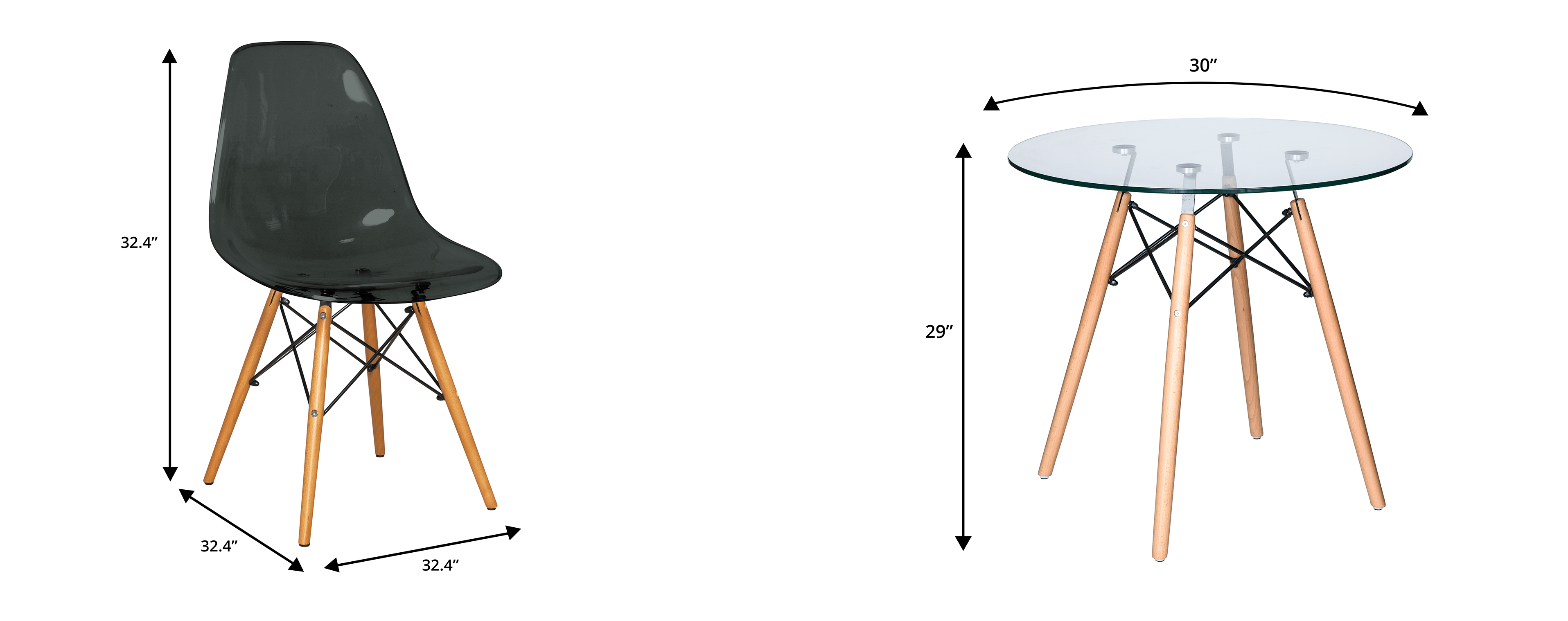 Create a welcoming and stylish dining space with the Dover 3-Piece Dining Set. This set includes a round clear glass top bistro table and 2 plastic chairs, making it perfect for small spaces. The modern design and sturdy construction offer both aesthetic appeal and practicality. Enjoy meals in comfort and style with this versatile dining set.