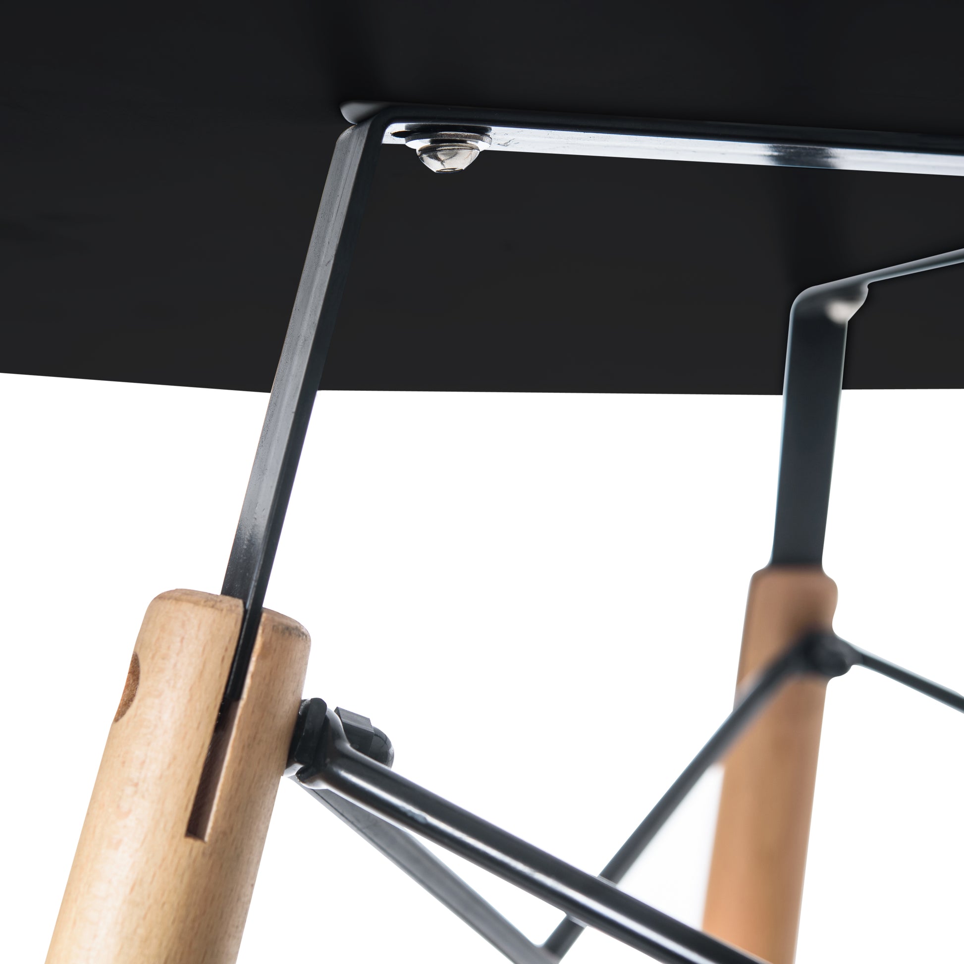 - The MDF tabletop is firmly mounted on beech wood dowel legs, strengthened by a black steel crisscross base for excellent stability and durability.