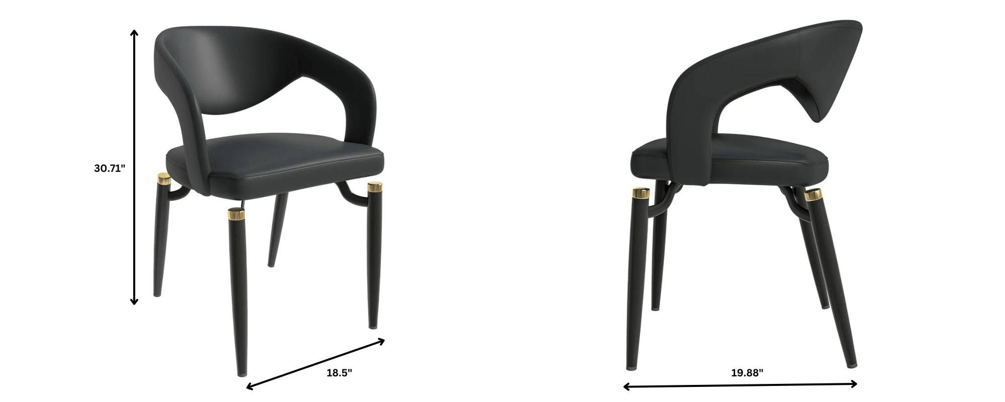 Elevate your dining experience with the sophisticated Entice Modern Dining Chair. Crafted with plush leather upholstery and sleek, curved open backrest, it offers unparalleled comfort and support. Designed for extended seating, it seamlessly blends elegance with durability. Easy to maintain with protective iron legs, it comes with rubber pads for floor protection.