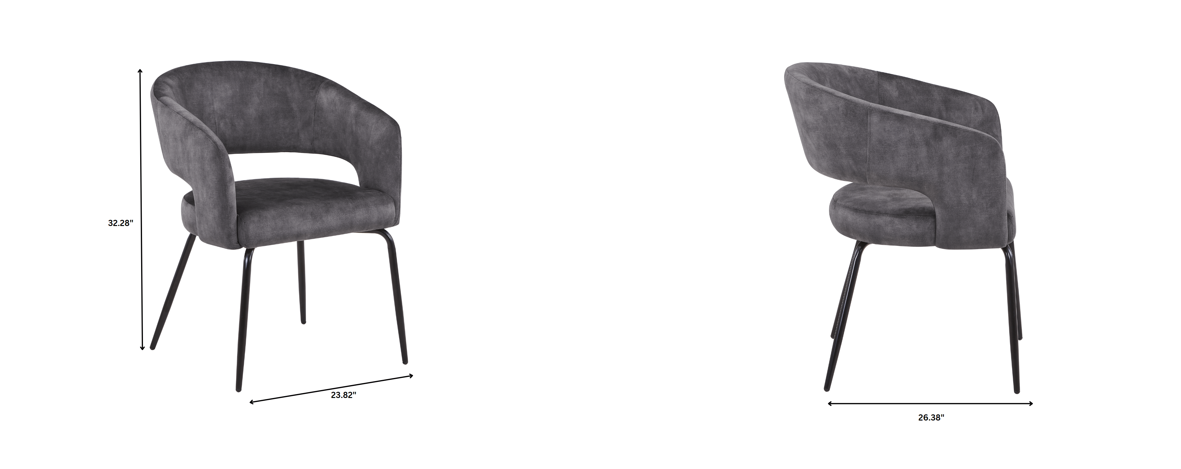 Gavin Dining Chair Upholstered in Leather/Velvet with Open Curved Backrest in Black Iron