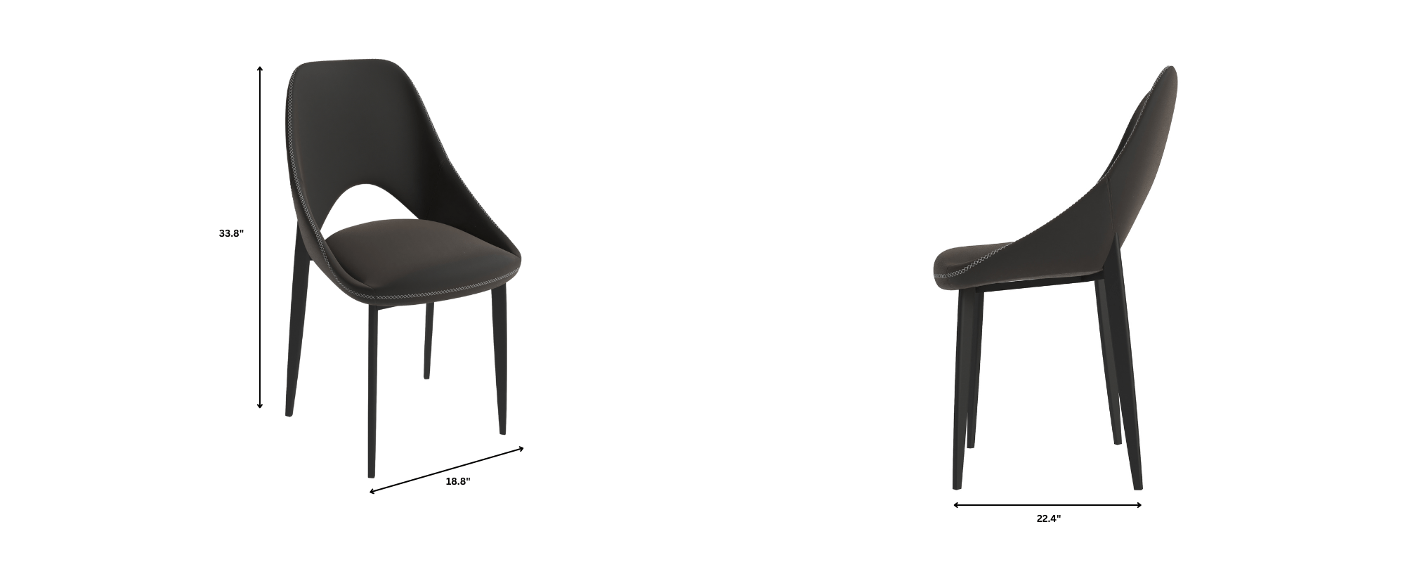 - Generous seating with a 33.86" H, 18.8" W, and 22.4" D seat for optimal comfort.