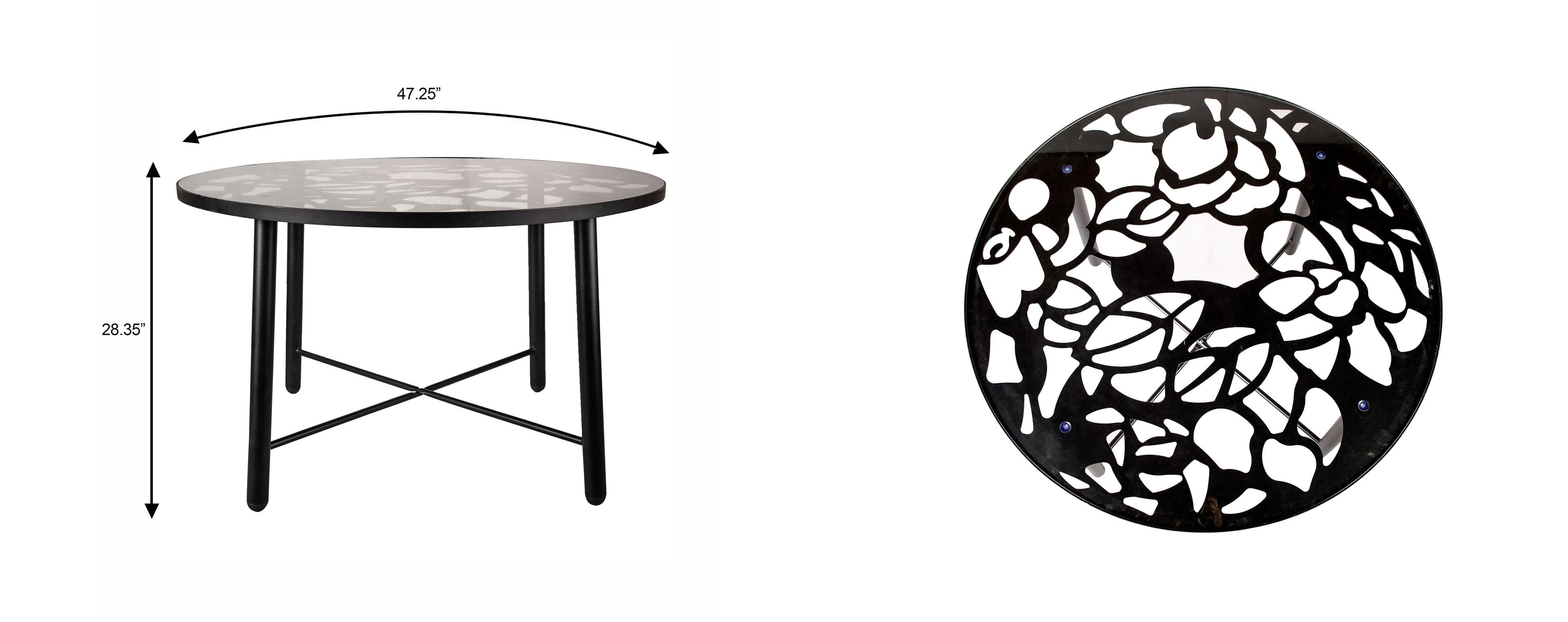 Upgrade your dining experience with our Devon Tree Design Glass Top Aluminum Base Indoor Outdoor 47.25" Dining Table. Sleek and modern, its durable glass top and sturdy aluminum base make it perfect for both indoor and outdoor use. Add a touch of elegance and style to any space!