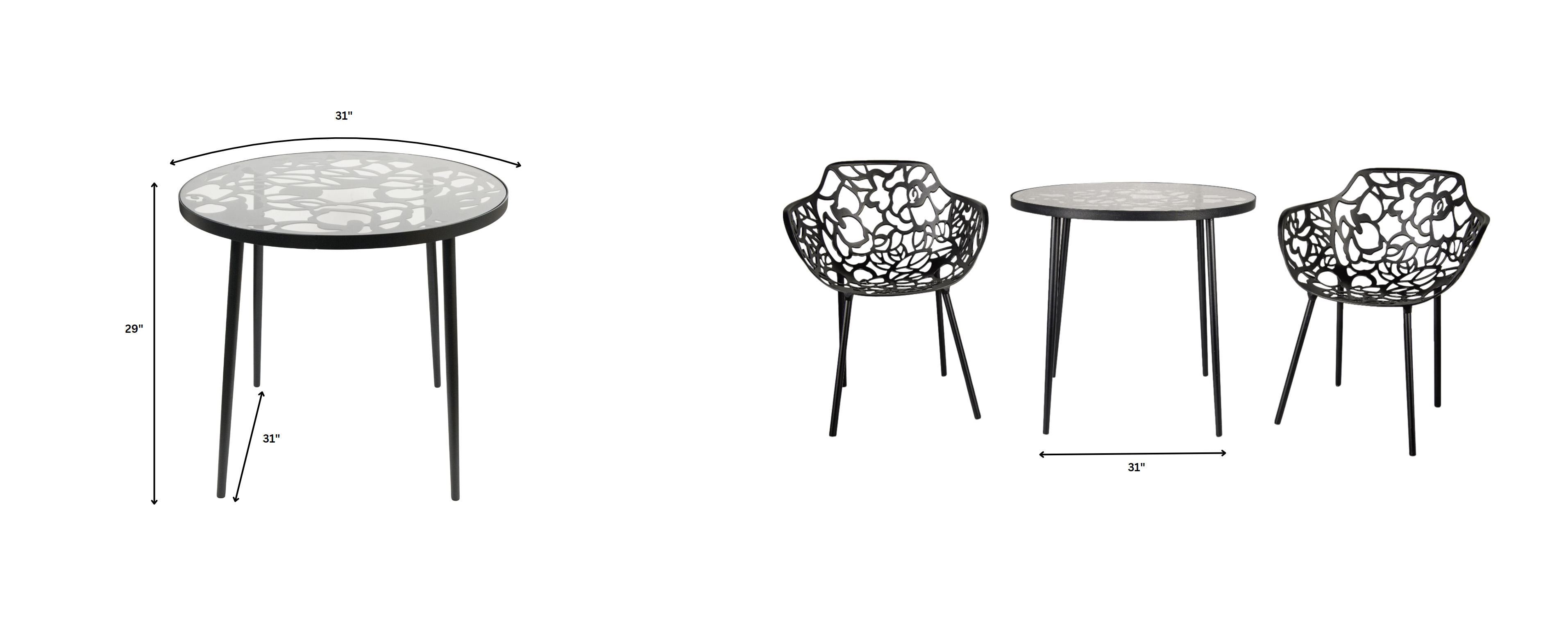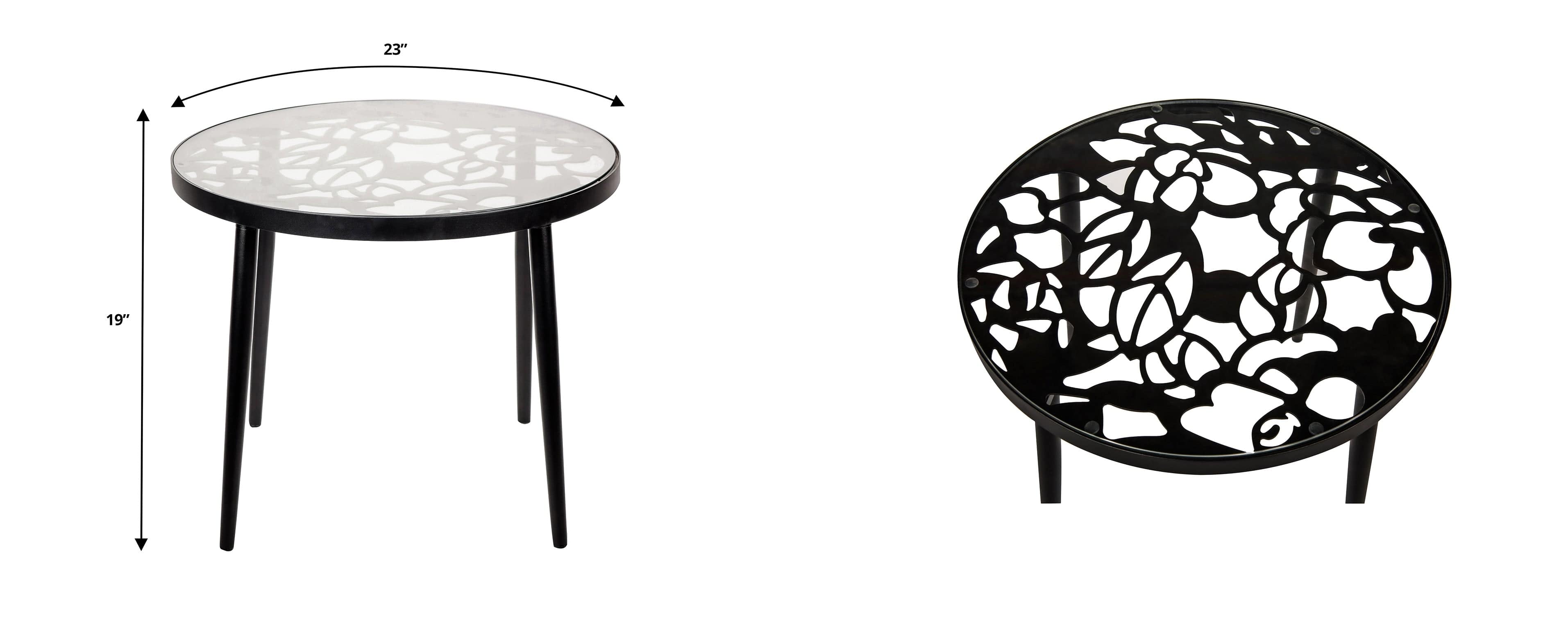 - Artistic floral cutout under the glass top adds elegant detail and enhances the table’s modern design.