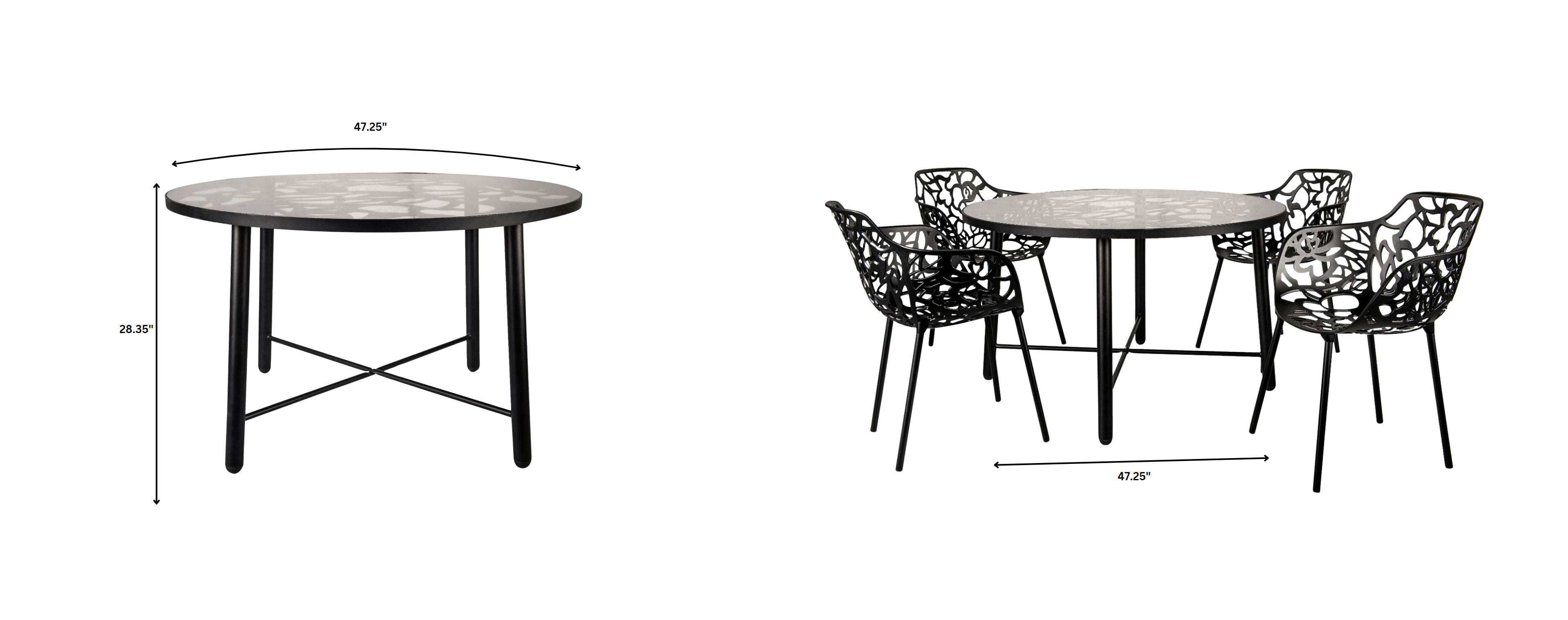 Features a captivating flower design, ideal for modern furniture enthusiasts. Crafted from aluminum with a high-quality tempered glass top, it ensures durability and elegance. Its unique cut-out pattern adds a contemporary flair, perfect for enhancing any indoor or outdoor dining area with style and sophistication.