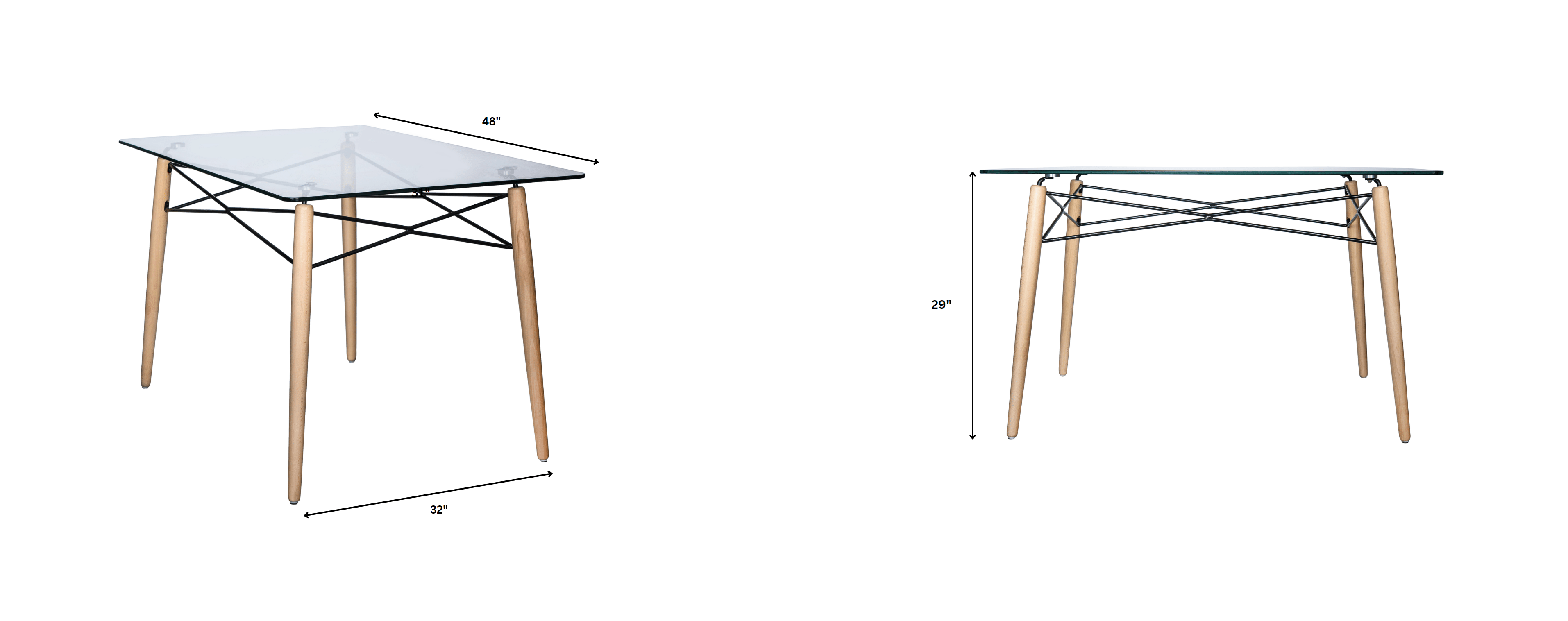 Dover Rectangle Dining Table With Glass Tabletop and Beech Wood Eiffel Base
