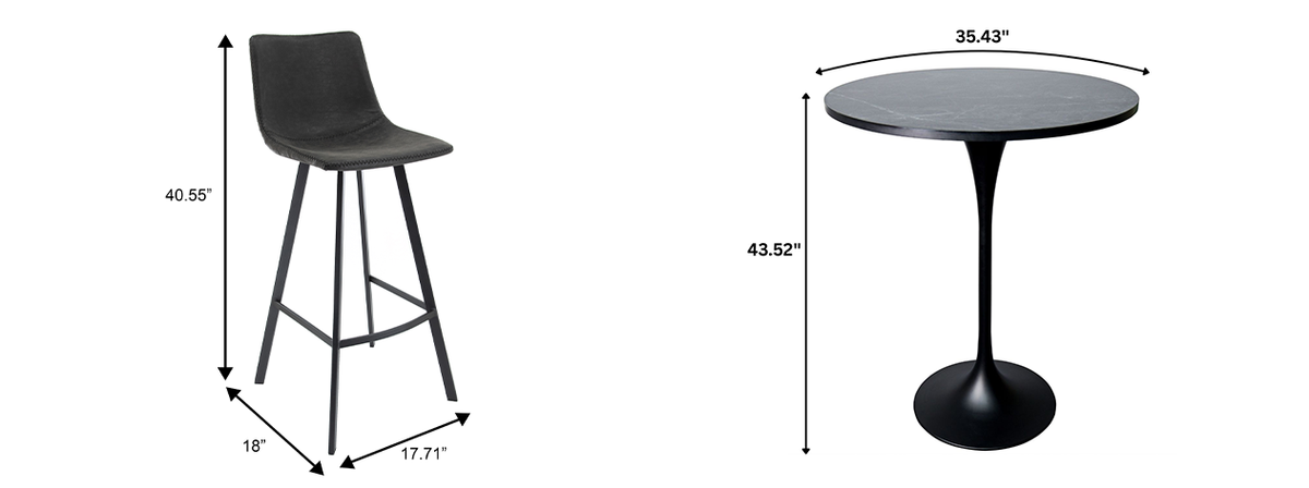 - 5-piece bar-height dining set with table and four stools.