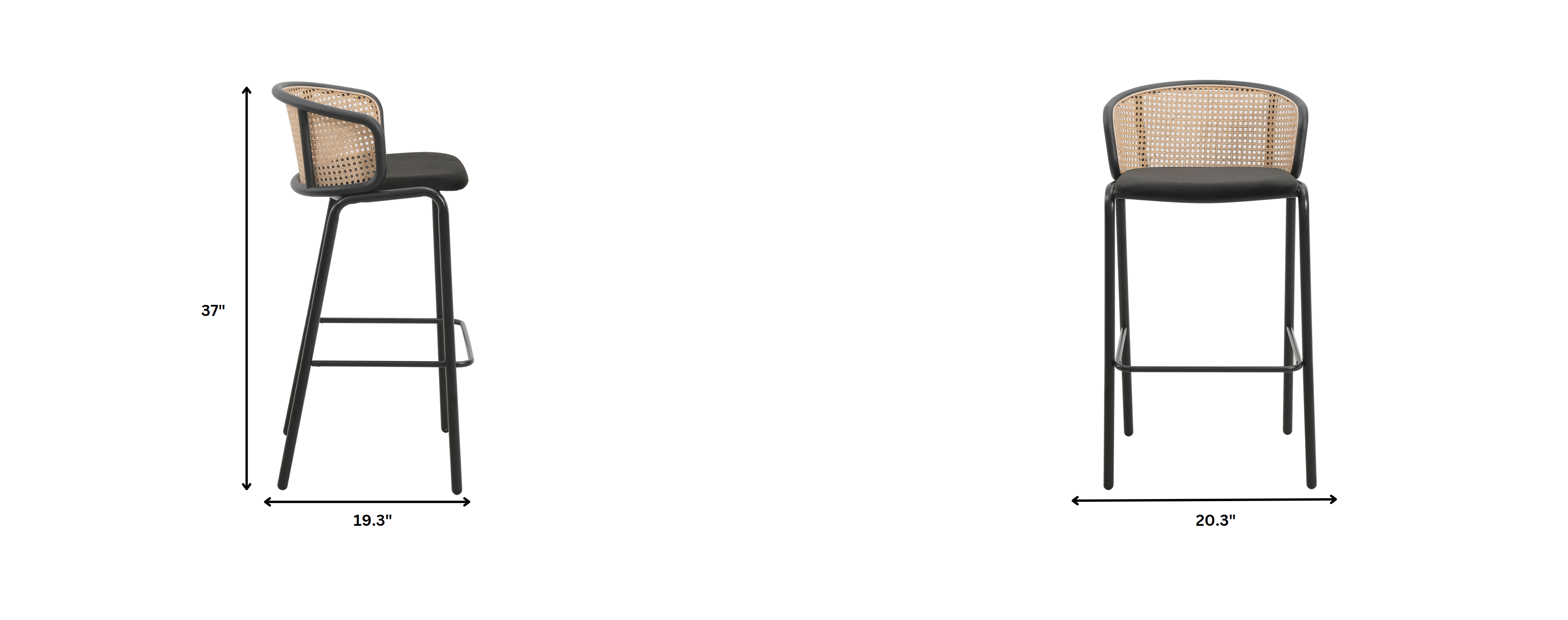 Ervilla's Mid-Century Modern Wicker Bar Stool boasts a sleek black and white powder coated steel frame and a comfortable fabric seat. Elevate your dining or bar space with its stylish design and durable construction. Enjoy a touch of retro charm with modern functionality!