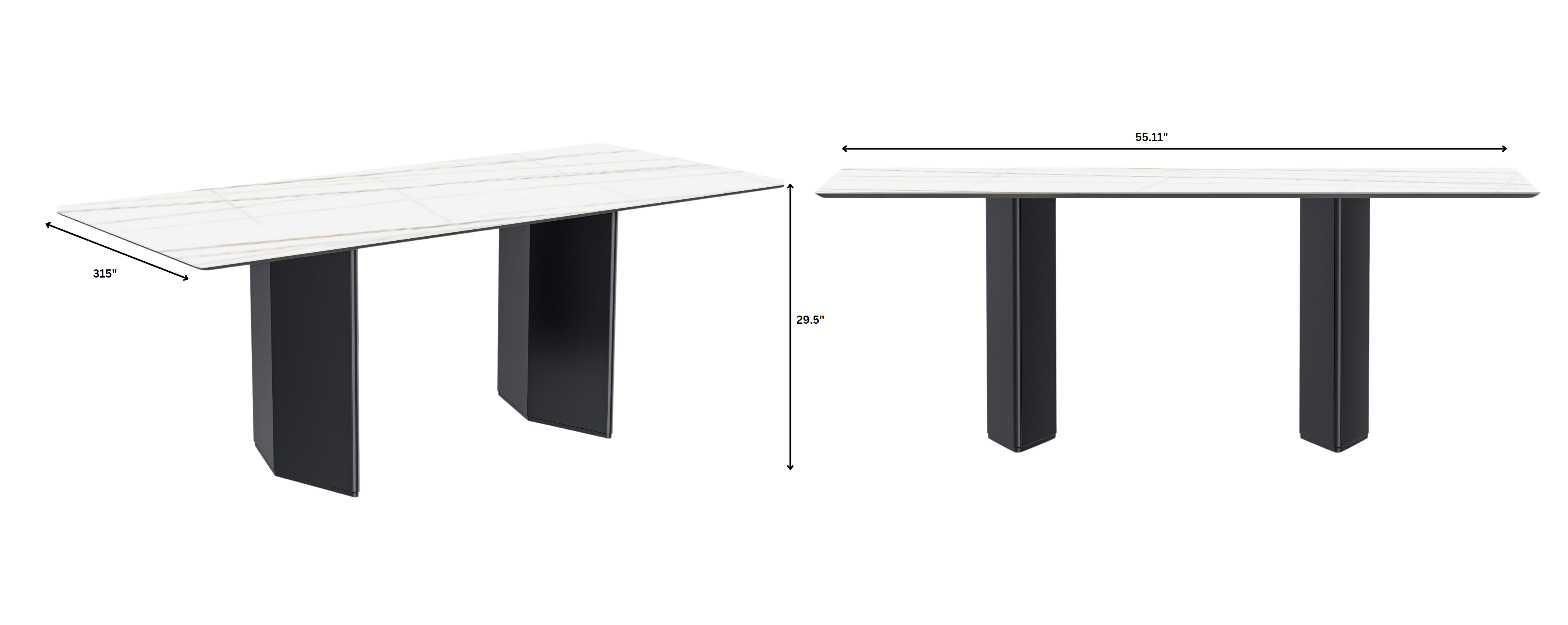 - Modern rectangular dining table blends clean lines and sleek design, perfect for kitchens, dining rooms, or breakfast nooks. Choose a sintered stone or glass tabletop—stone is heat and scratch resistant, glass offers elegance with light-reflecting appeal.