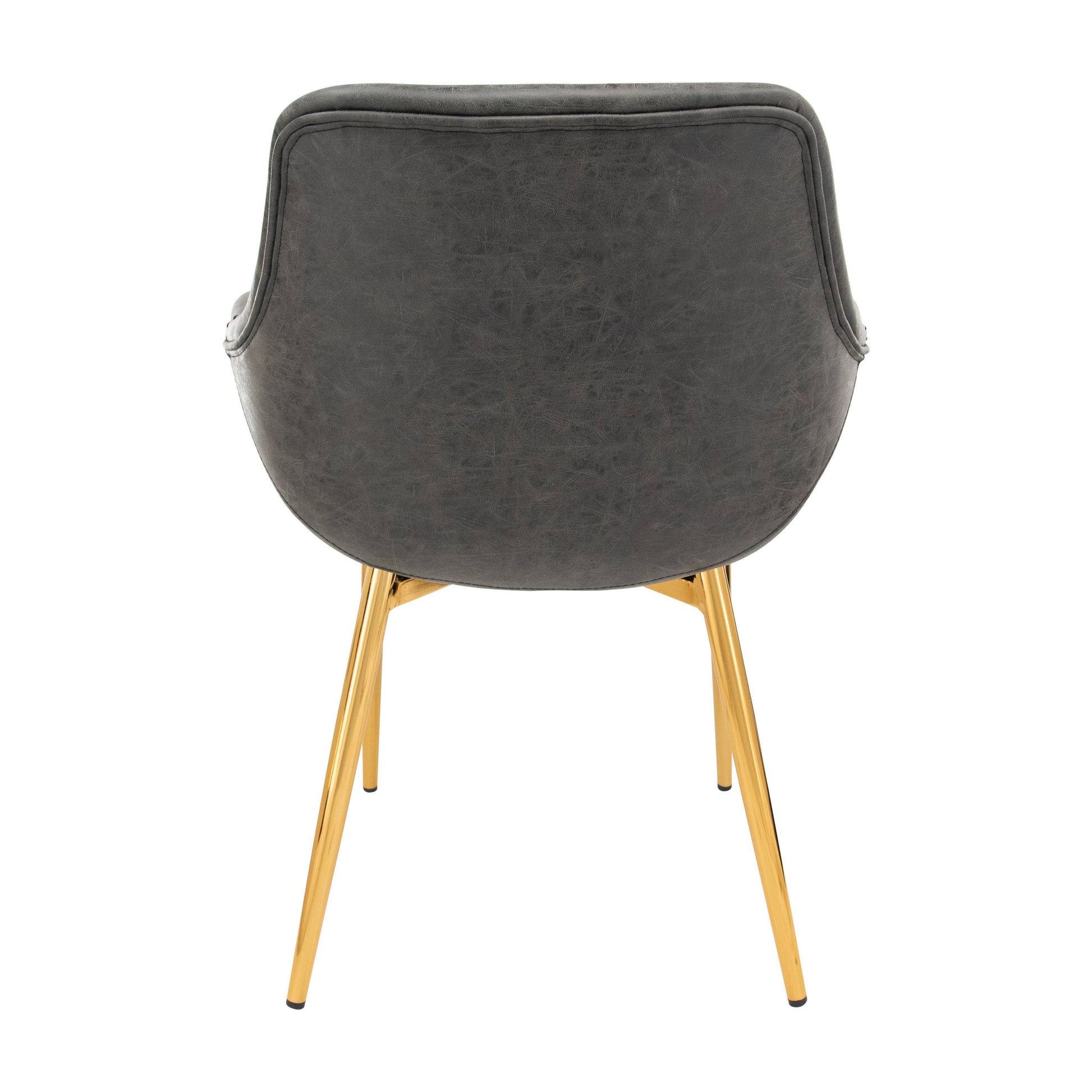 Markley Modern Leather Dining Arm Chair With Black/Gold Metal Legs