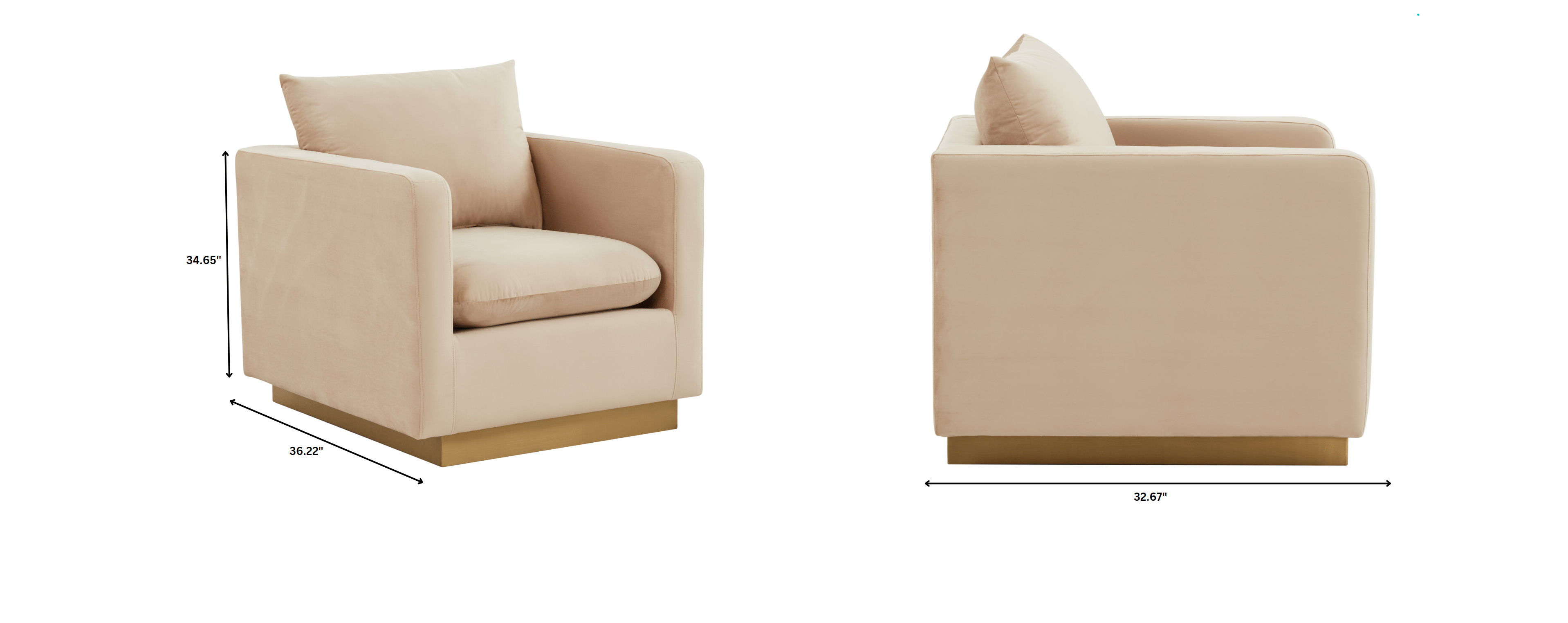 Introducing the Nervo Modern Mid-Century Accent Chair, crafted with a durable wood frame and stainless steel base. The cushioned seat, filled with foam and supported by pocket springs, offers lasting comfort. Upholstered in velvet, this chair adds a touch of elegance to any room. Experience a timeless and durable addition to your home.