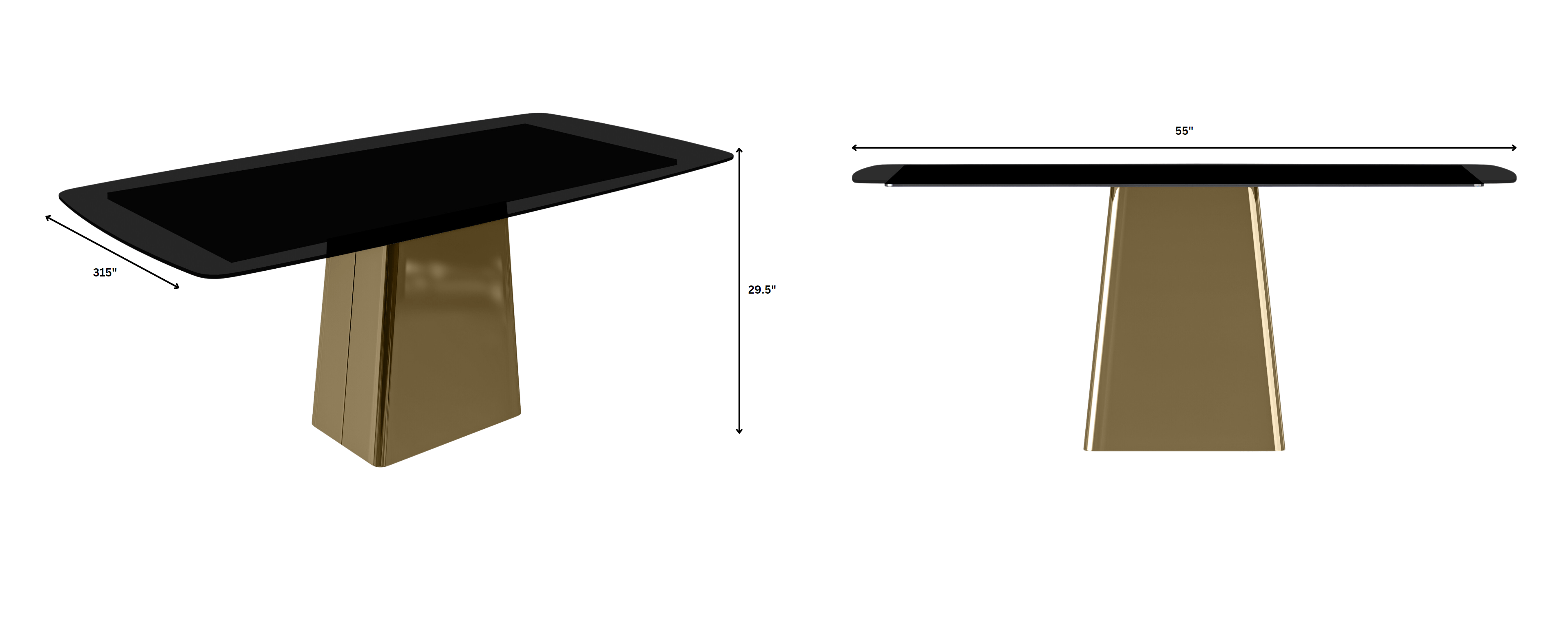 Quinix Rectangular Dining Table with Sintered Stone/Glass Tabletop and Gold Stainless Steel Base