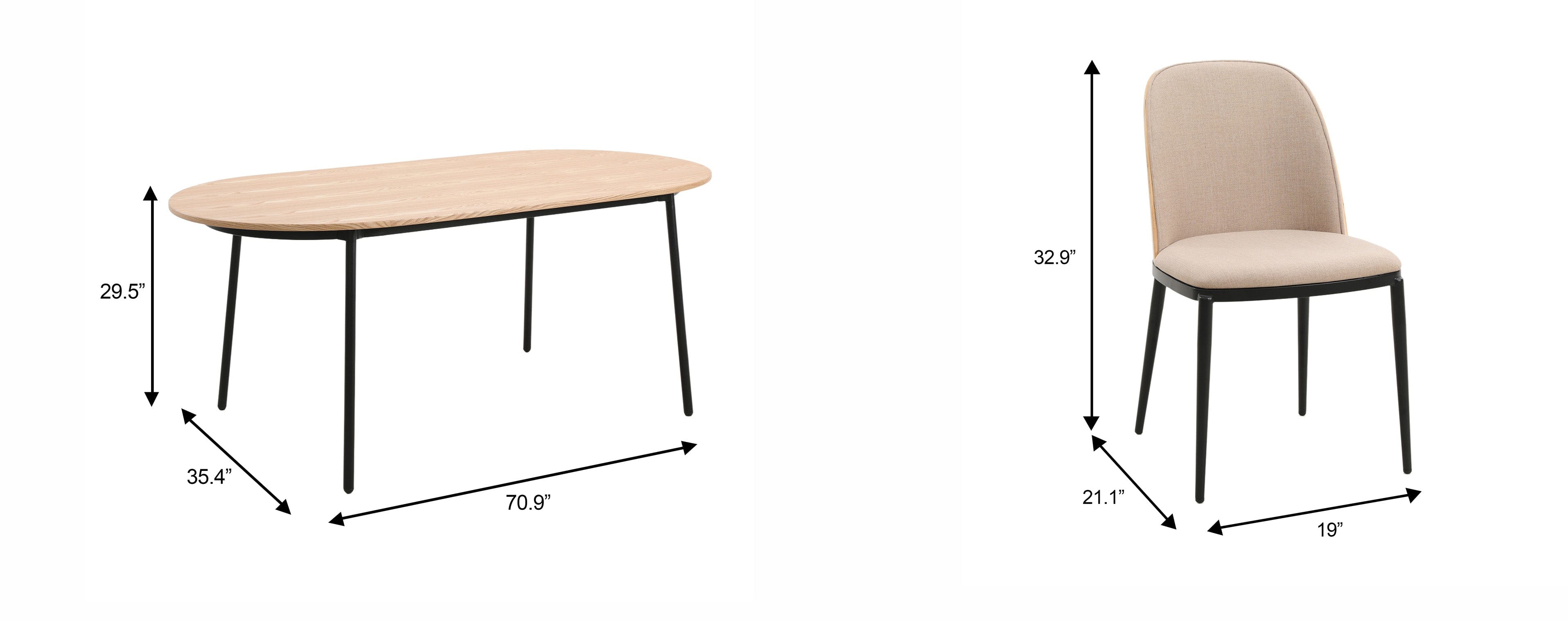 Experience luxury and comfort with our Tule 7-Piece Dining Set. This steel set includes 6 upholstered dining chairs for added comfort and a 71" oval dining table with an MDF tabletop for durability. Elevate your dining experience with style and functionality.