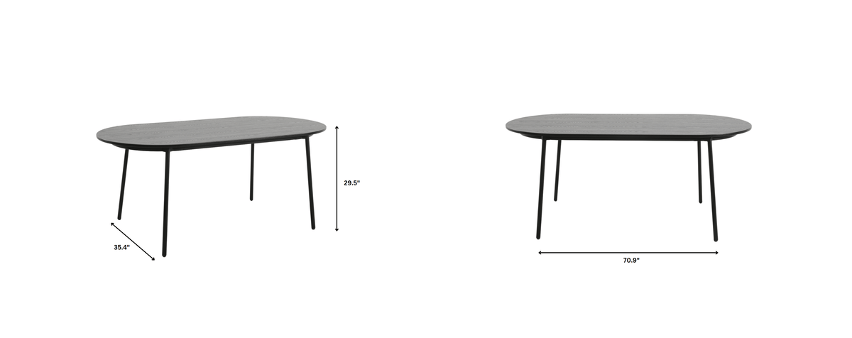 Elevate your dining experience with the Tule Modern 70"/84" Oval Dining Table. Its sturdy MDF tabletop and sleek black steel legs add a touch of modern elegance to any space. Enjoy meals with family and friends in style and comfort.