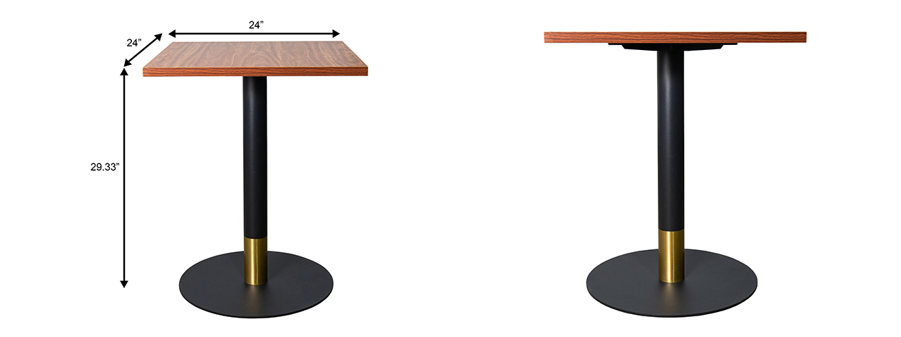 Vail Collection Dining Table Black/Gold Round Base With 24" Square Black MDF Top