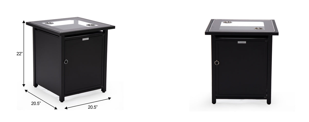 Walbrooke Modern Square Tank Holder Table with Tempered Glass Top and Powder Coated Aluminum Slats/Non Slats Design