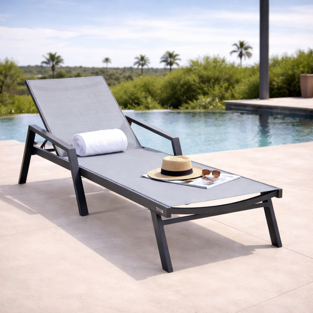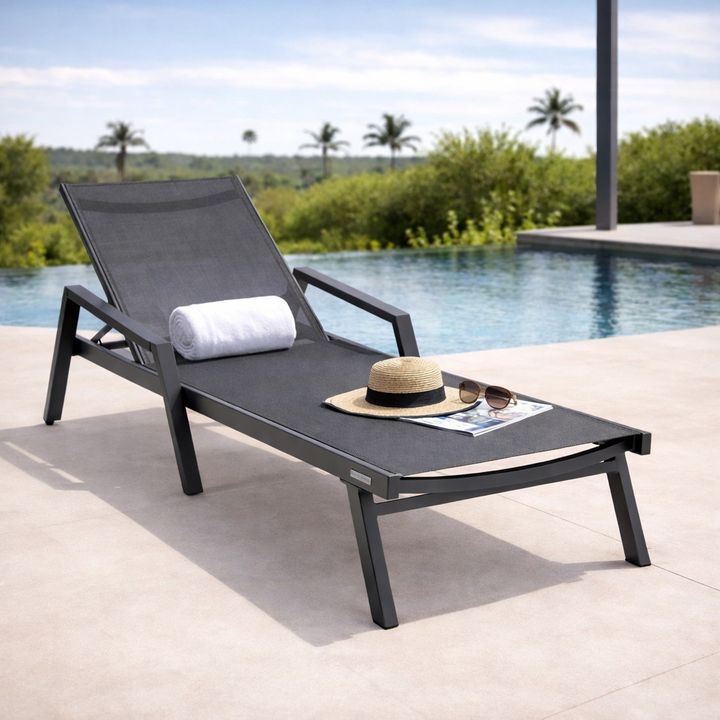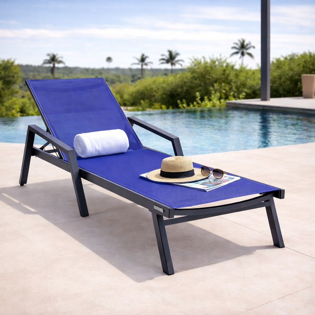 Marlin Aluminum Outdoor Chaise Lounge Chair with Sling Fabric Seat