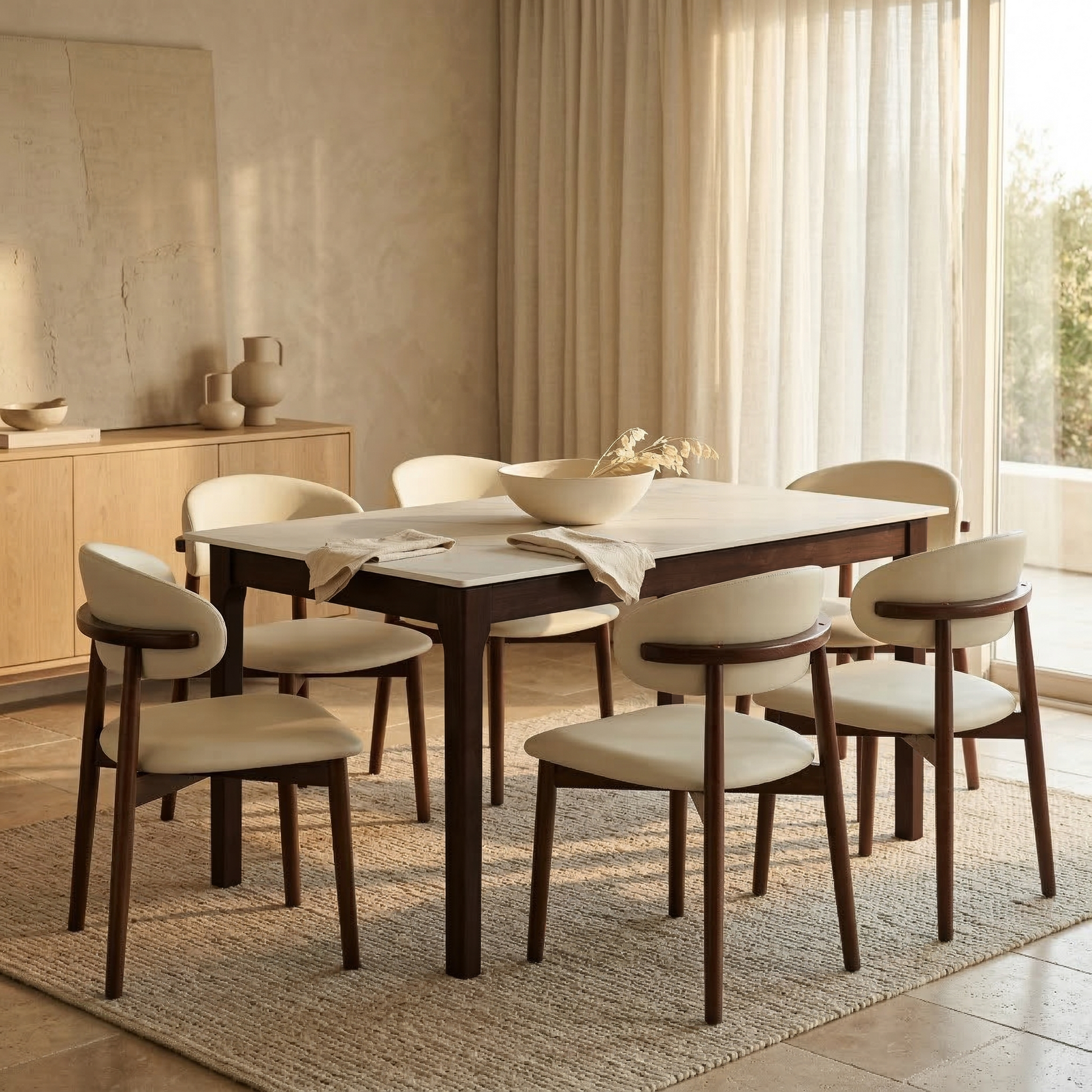 Mina Dining Table with Sintered Stone Tabletop with Metal/Wood Legs