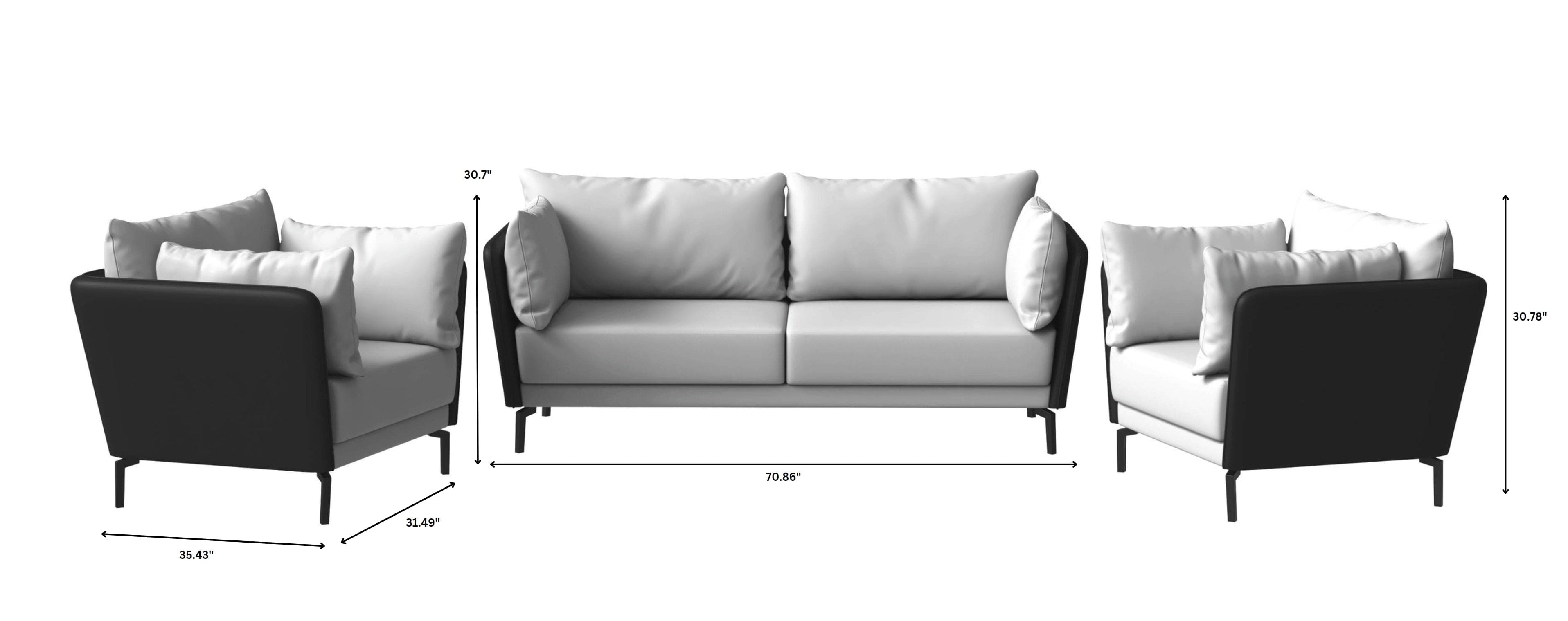 Luxify 3-Piece Leather Sofa Set with Stainless Steel Legs and Removable Cushions
