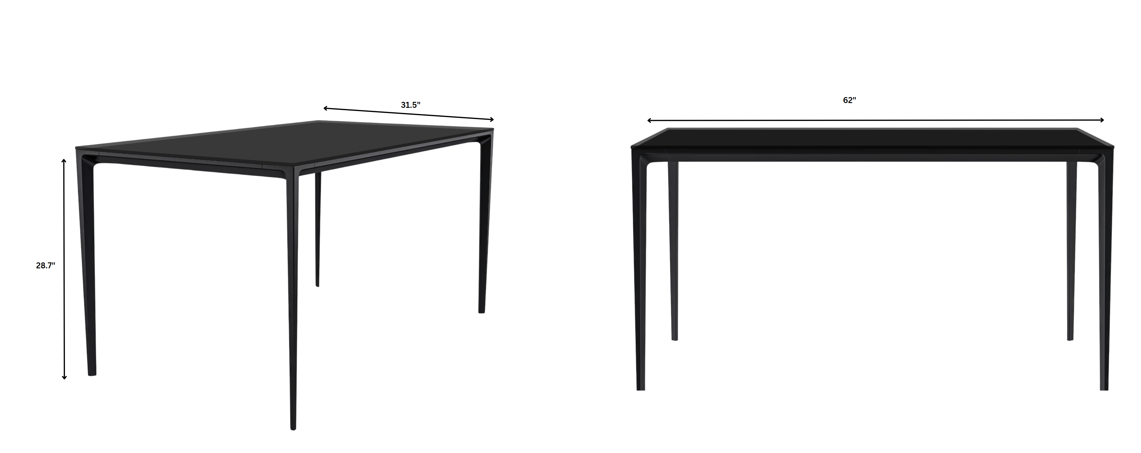 Avo Rectangular Dining Table with Sintered Stone/Glass Tabletop in Black Aluminum Base