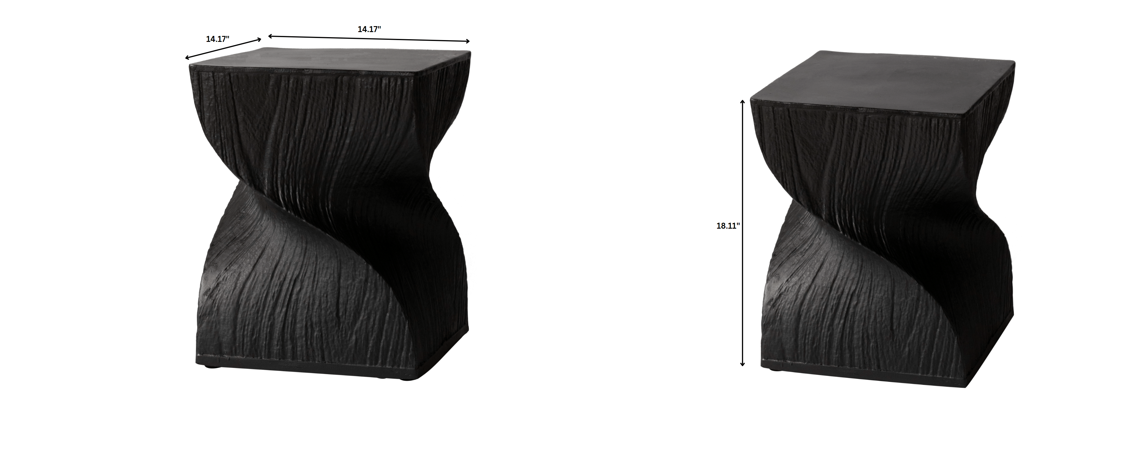 Elevate your space with the modern side table from the Onyx Series. Its sleek, twisted design and bark-like texture blend modern and rustic elements. Perfect for indoor or outdoor use, it suits any room. Ready for immediate use with no assembly required, this versatile table is stylish, durable, and easy to maintain.