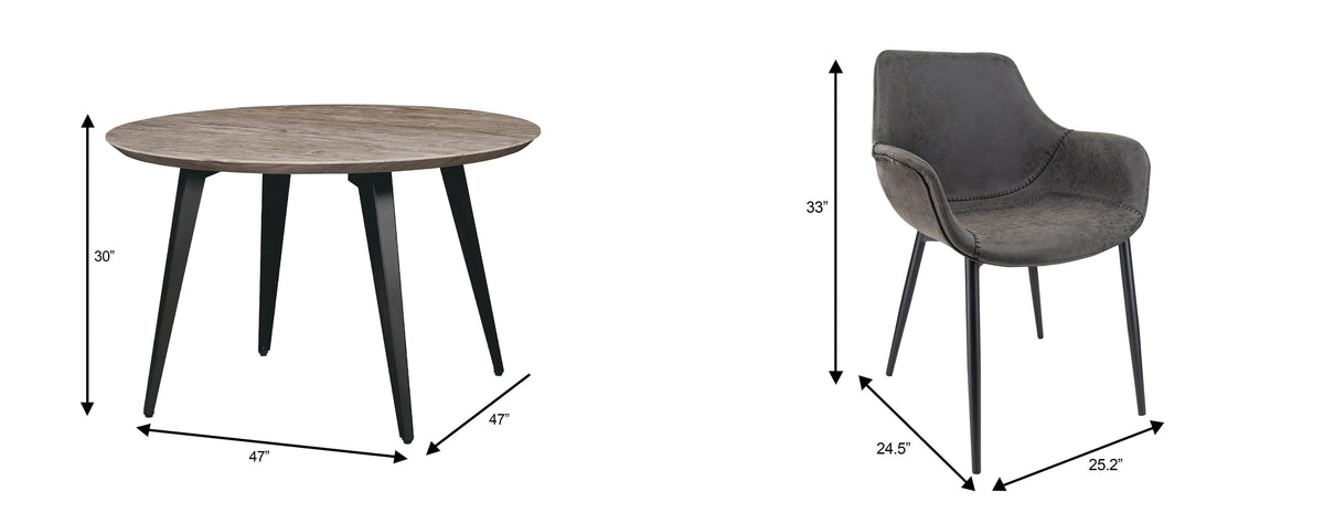 Ravenna 5-Piece Dining Set 47" Round Dining Table 4 Leather Dining Chairs