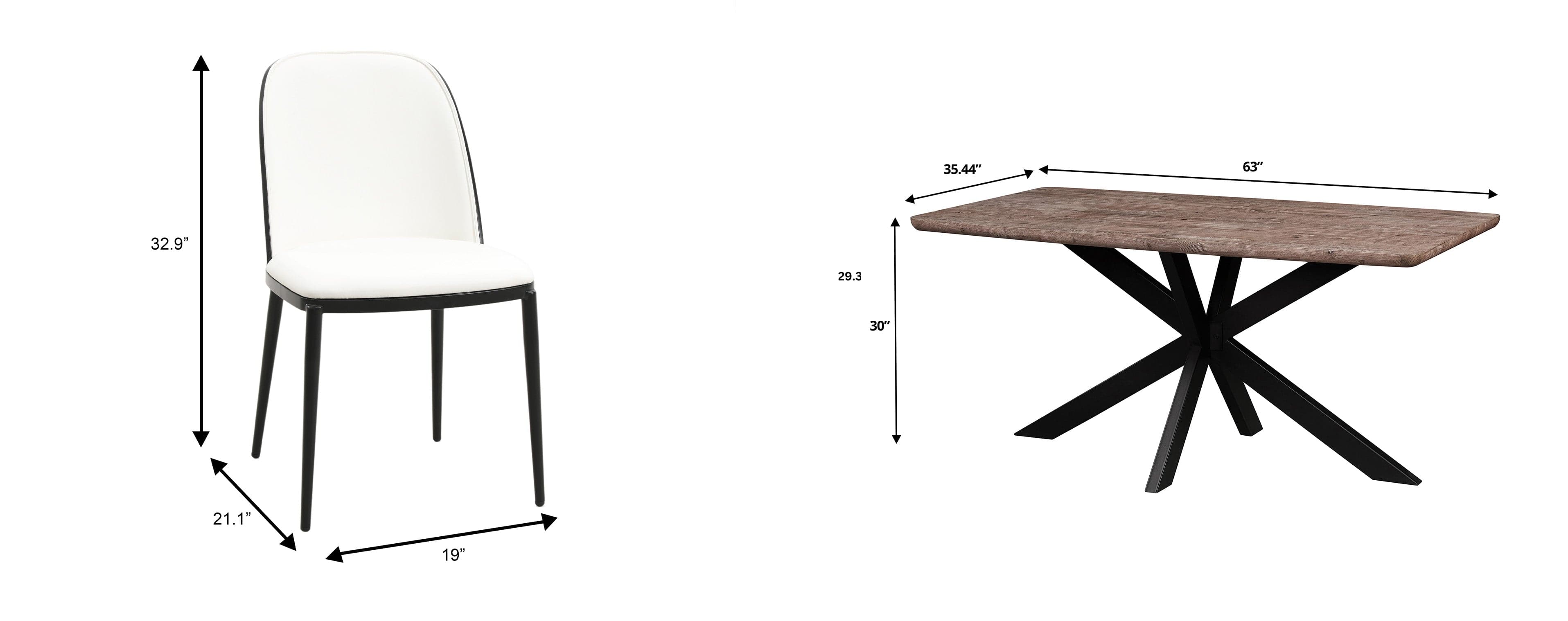 Transform your dining space with the Ravenna 6-Piece Dining Set. This gorgeous set features a 63" rectangular dining table in rustic grey and 5 stylish leather dining chairs. Enjoy luxurious dining experiences with your loved ones in this elegant and comfortable set. Upgrade your home and create lasting memories with the Ravenna set.