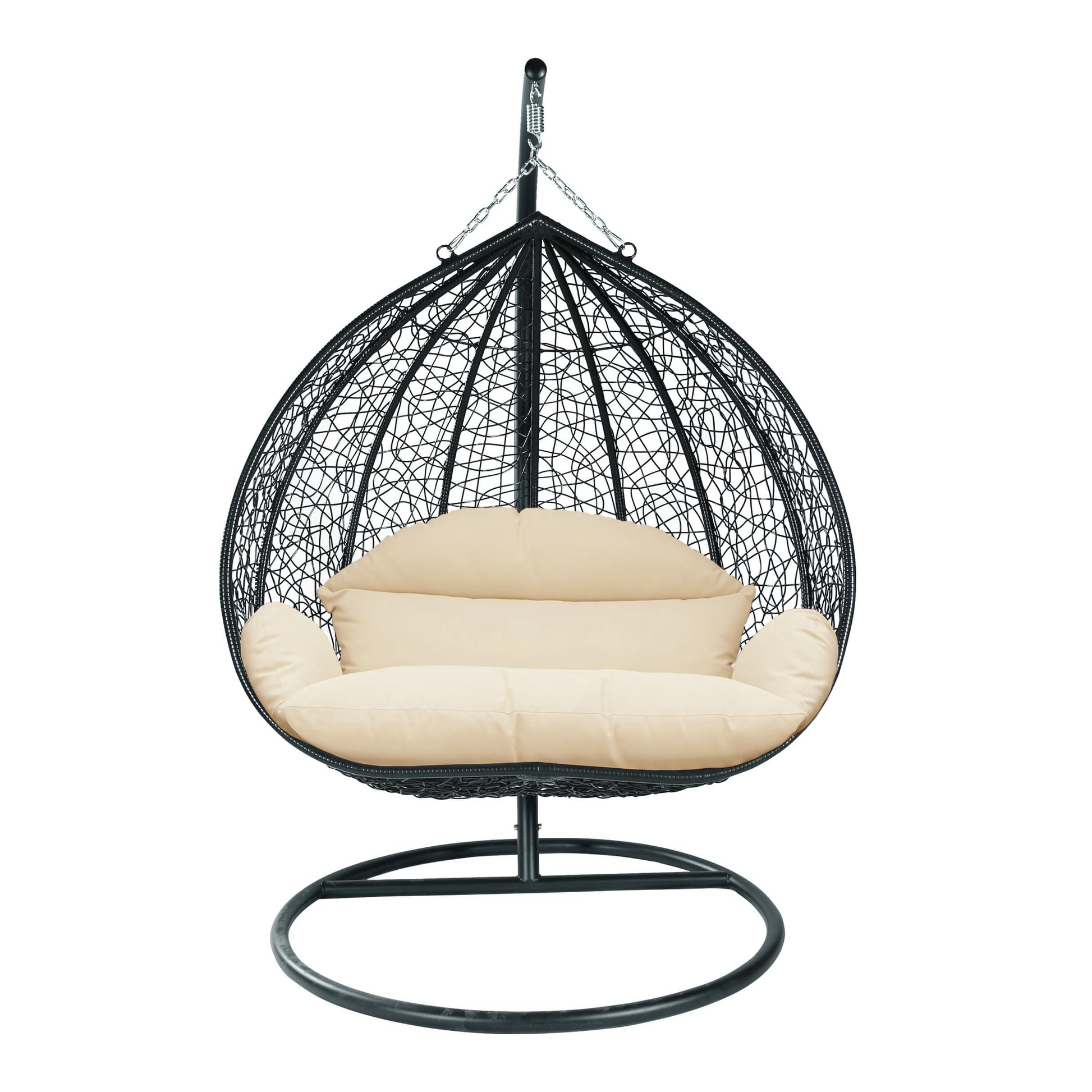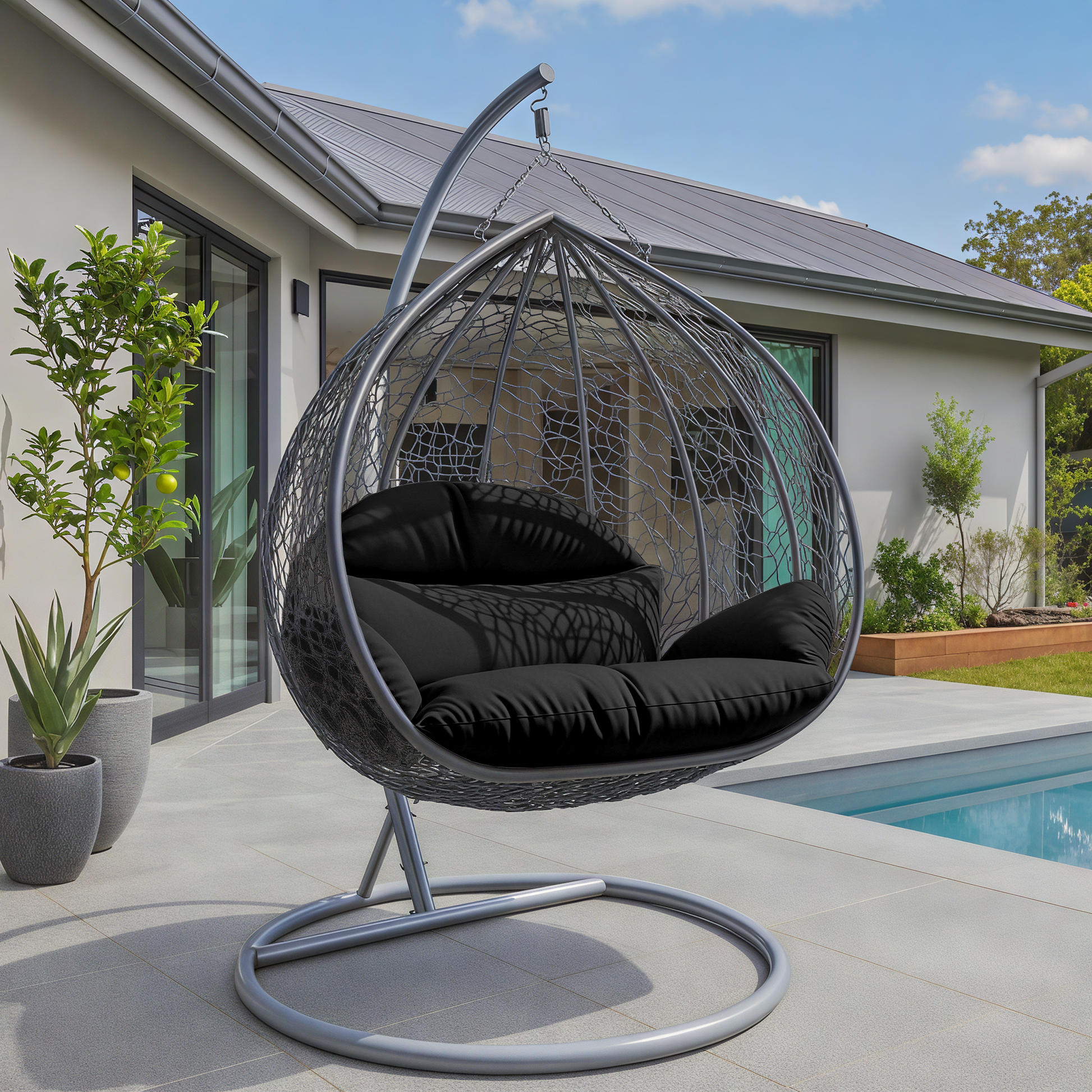 Recluse Modern Outdoor Egg Swing Chair Black/Brown/Grey Frame in Teardrop Design with ES57 Cushion