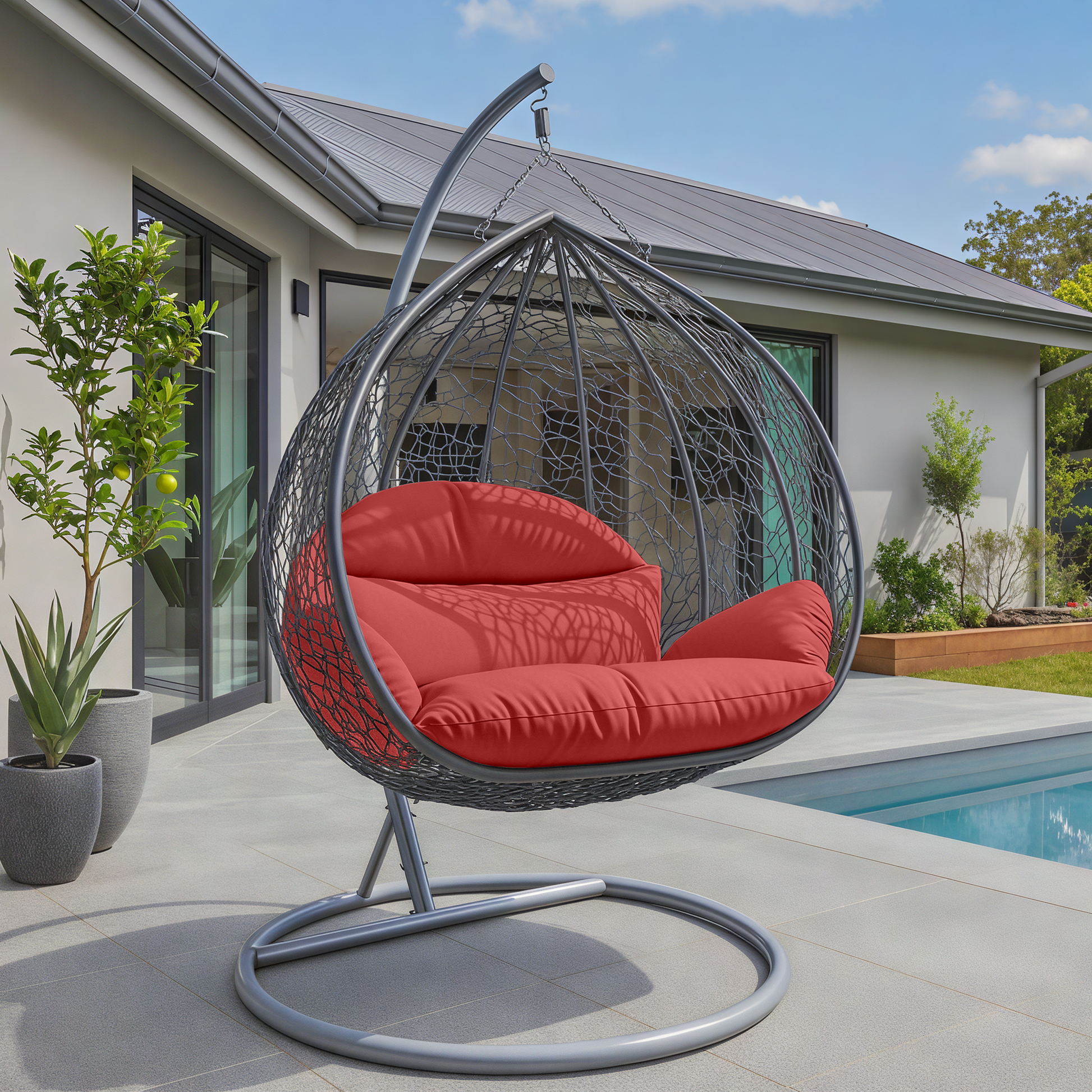 Experience the ultimate relaxation in our Recluse Modern Outdoor Egg Swing Chair! Designed with a sleek black/brown/grey frame in a unique teardrop design, this chair adds a modern touch to any outdoor space. The included ES57 cushion provides added comfort as you swing, giving you the perfect escape from the hustle and bustle of everyday life. Indulge in luxurious comfort with our Egg Swing Chair!