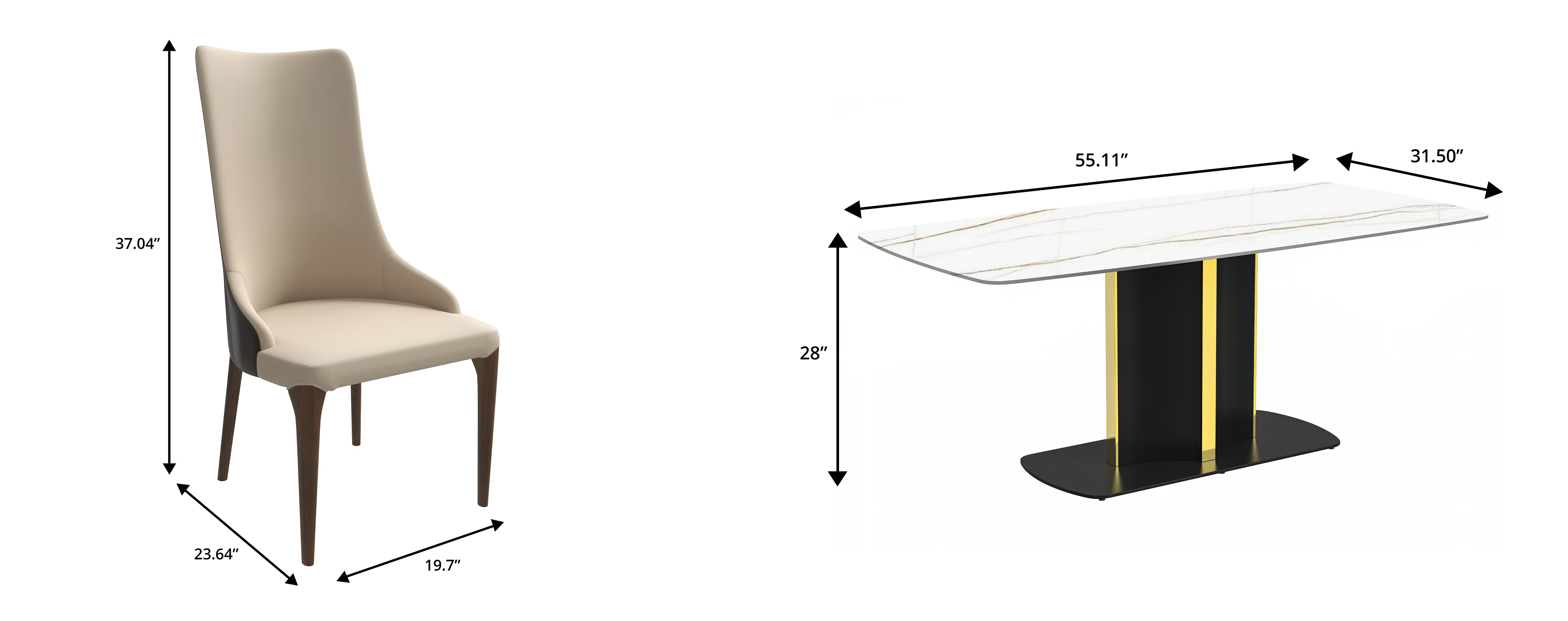- Includes a 55” sintered stone table and six chairs, seating up to six in an elegant dining setup.