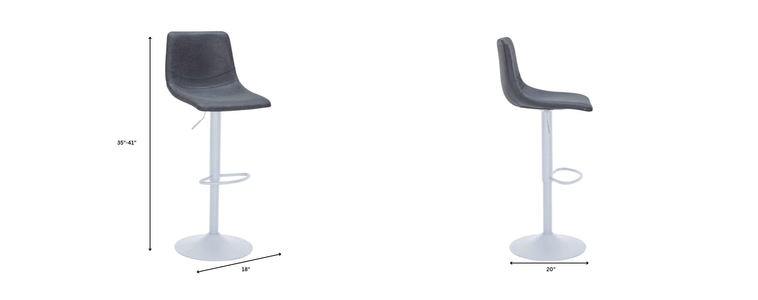 - Adjust seat height from 35" to 43.7" with a lever for various counter and bar heights.