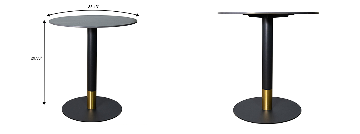 Vail Collection Dining Table Black/Gold Base With 27"/36" Round Stone Top