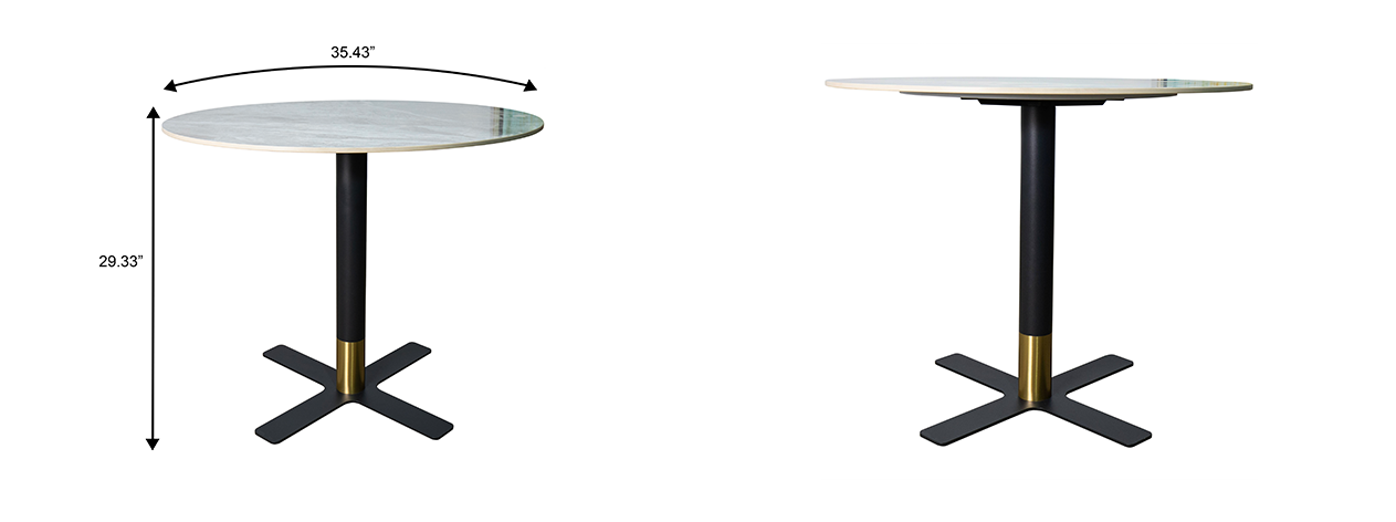 Vail Collection Dining Table Black/Gold X Base With 27"/36" Round Black Stone Top