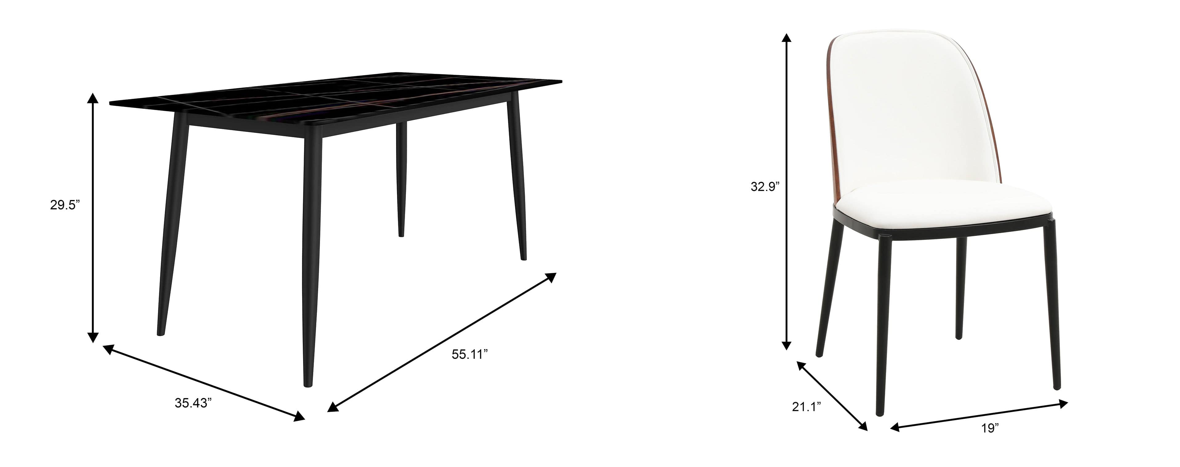 Zayle 7-Piece Dining Set with 55" Rectangular Dining Table in Black/Gold Sintered Stone Top and 6 Leather Dining Chairs