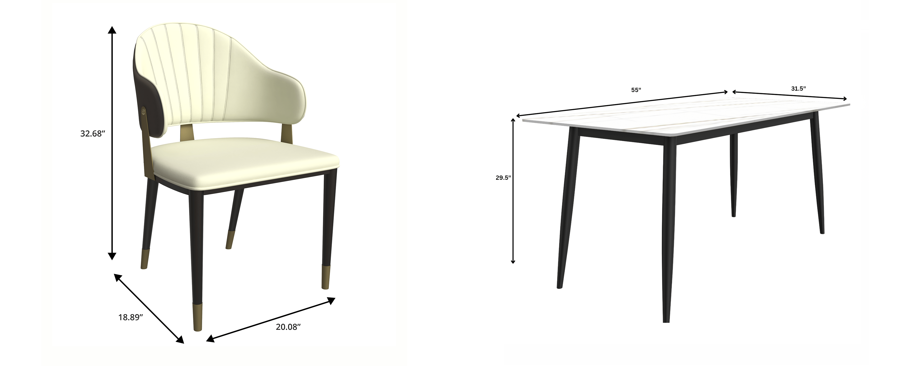Elevate your dining experience with the luxurious Zayle 7-Piece Dining Set. The sleek 55" rectangular table features a stunning white and gold sintered stone top, while the 6 leather dining chairs add a touch of elegance. Perfect for hosting dinner parties or enjoying family meals in style.