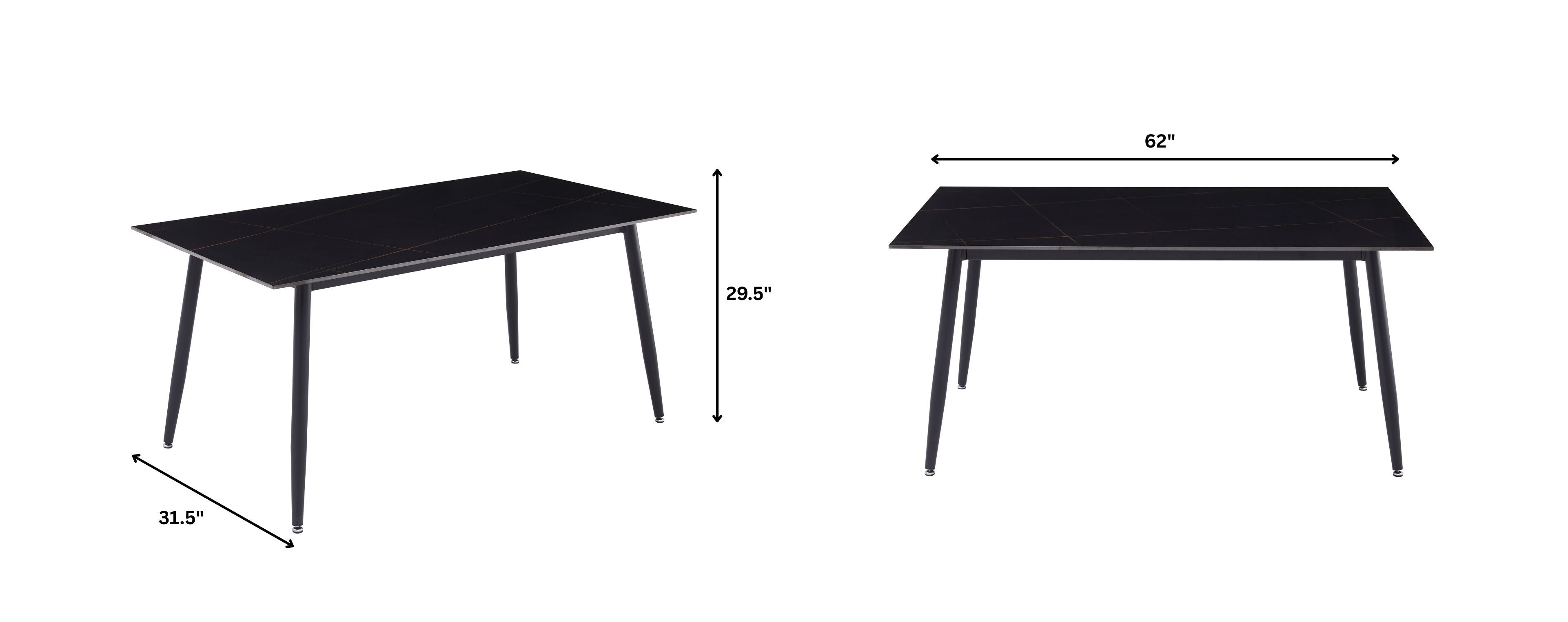 Zayle Modern Rectangular Dining Table with Glass/Stone Tabletop and Black Steel Base